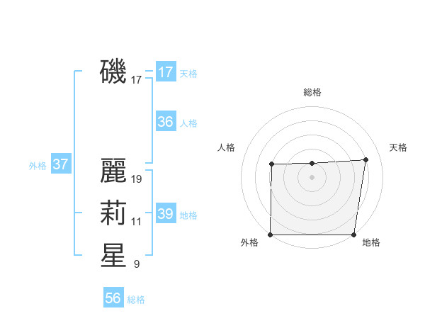 磯 麗莉星さんの外格は37画の5点!