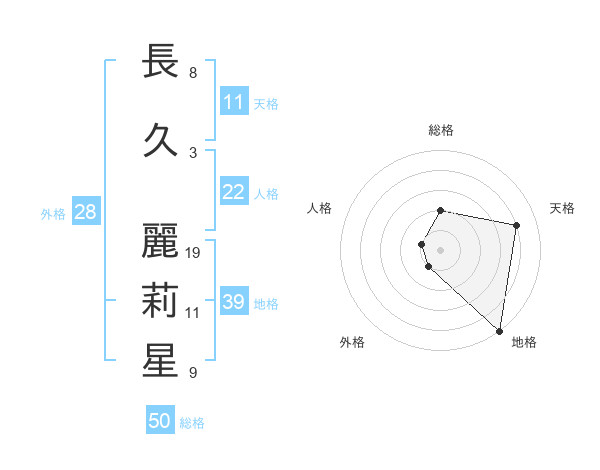 長久 麗莉星さんを姓名の画数から五運を鑑定