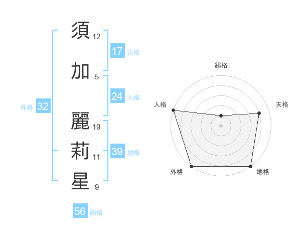 須加 麗莉星さんの外格は32画の5点!