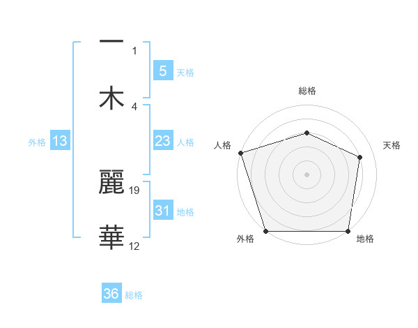 一木 麗華さんの天格は5画の4点!