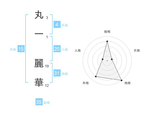 丸一 麗華さんを姓名の画数から五運を鑑定