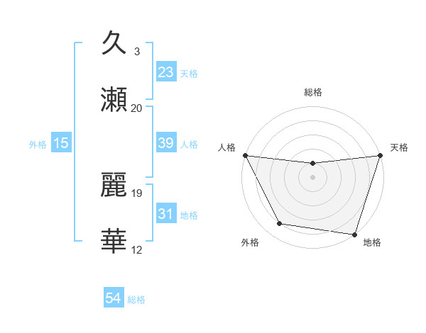 久瀬 麗華さんの天格は23画の5点!
