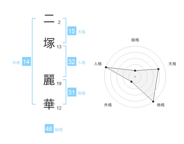 二塚 麗華さんの天格は15画の4点!