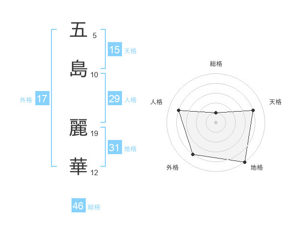 五島 麗華さんの総格は46画の1点!