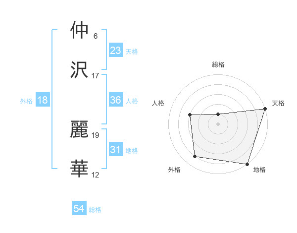 仲沢 麗華さんの天格は23画の5点!