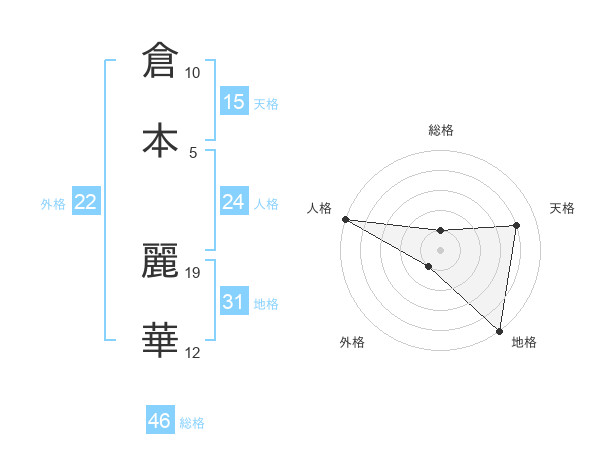 倉本 麗華さんを姓名の画数から五運を鑑定
