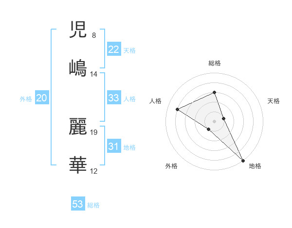 児嶋 麗華さんを姓名の画数から五運を鑑定