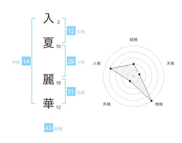 入夏 麗華さんの総格は43画の2点!