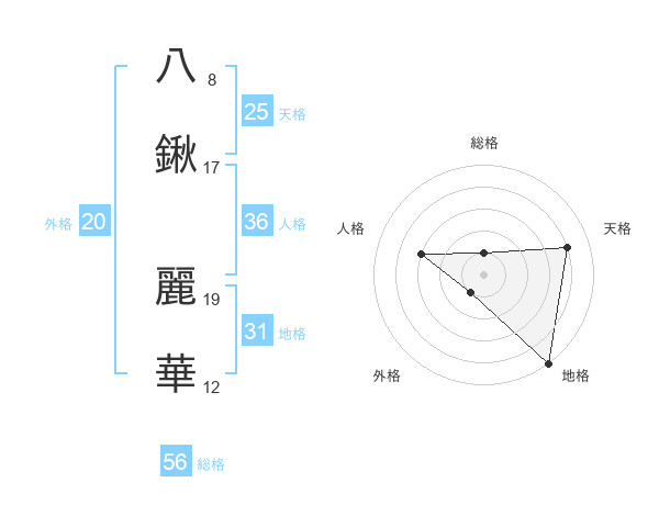 八鍬 麗華さんの外格は20画の1点!