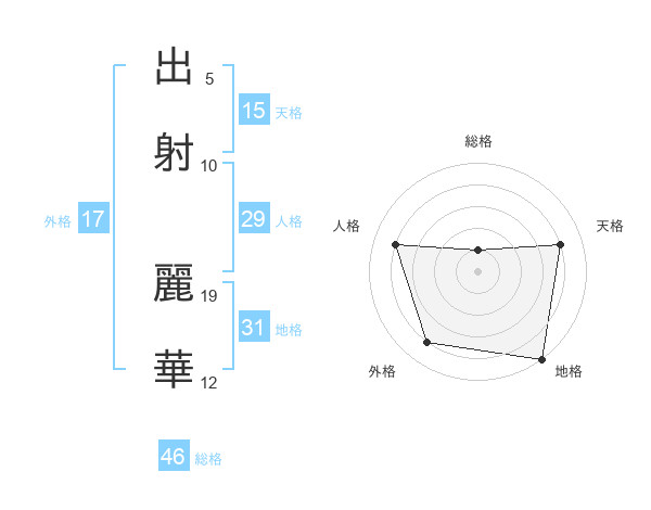 出射 麗華さんの総格は46画の1点!