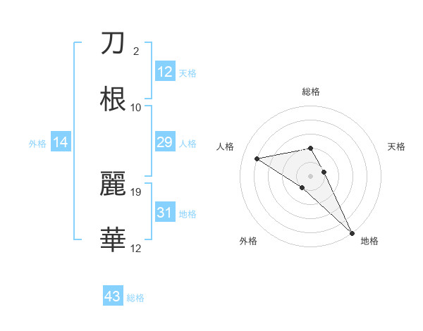 刀根 麗華さんの天格は12画の1点!