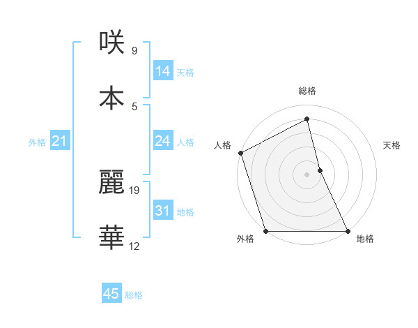 咲本 麗華さんの総格は45画の4点!