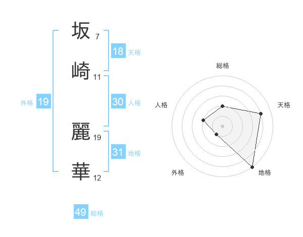 坂崎 麗華さんを姓名の画数から五運を鑑定