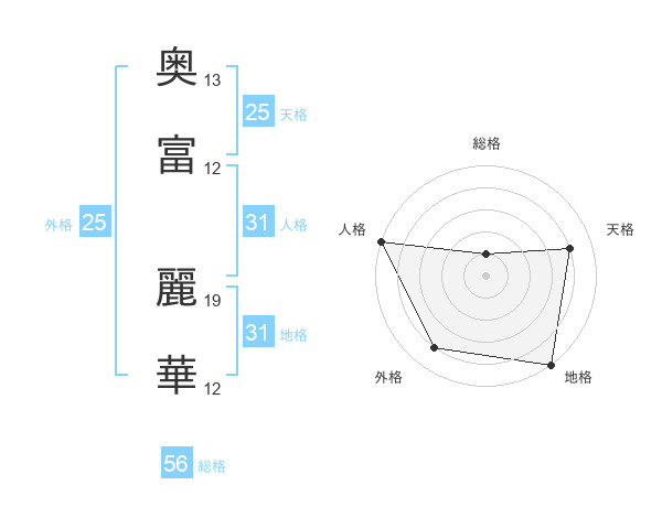 奥富 麗華さんの総格は56画の1点!