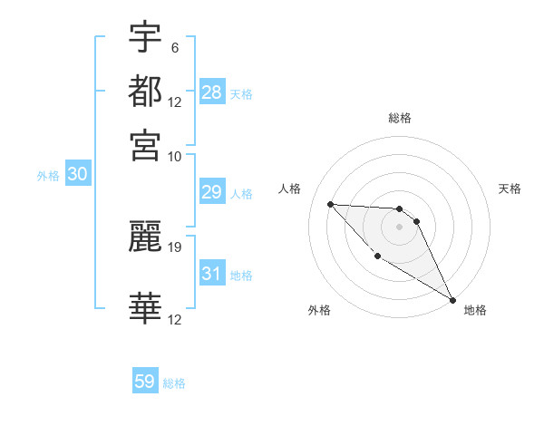 宇都宮 麗華さんの総格は59画の1点