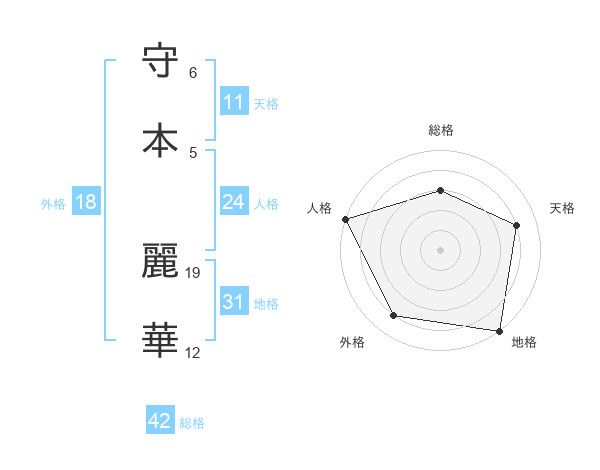 守本 麗華さんの総格は42画の3点!