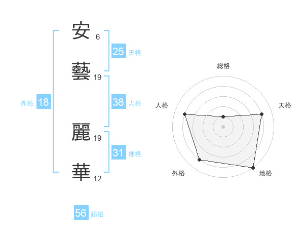 安藝 麗華さんを姓名の画数から五運を鑑定