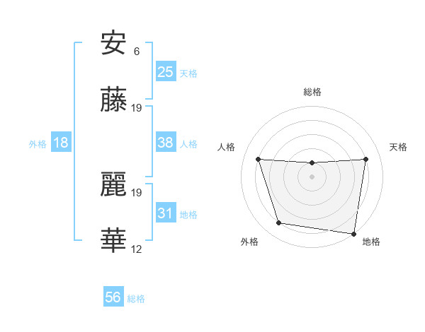 安藤 麗華さんの総格は56画の1点!