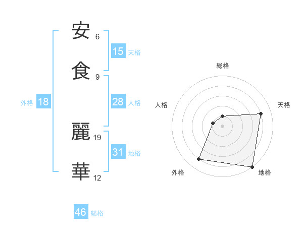 安食 麗華さんの総格は46画の1点!