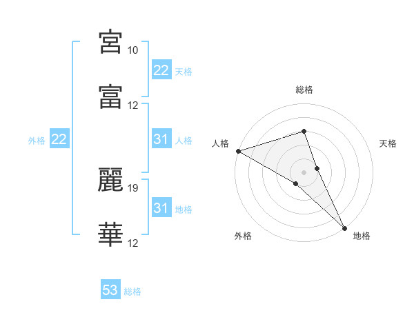 宮富 麗華さんを姓名の画数から五運を鑑定