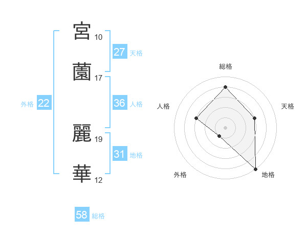 宮薗 麗華さんを姓名の画数から五運を鑑定