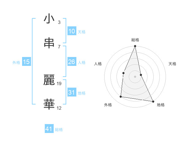 小串 麗華さんの総格は41画の5点!