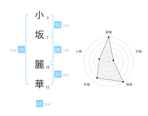 小坂 麗華さんを姓名の画数から五運を鑑定