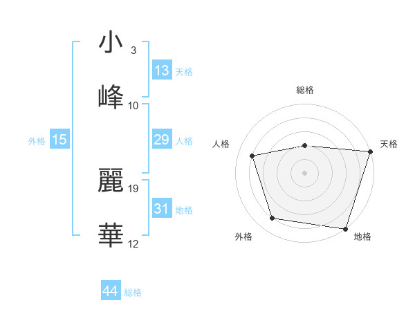 小峰 麗華さんを姓名の画数から五運を鑑定