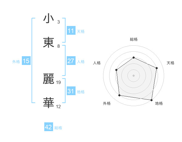 小東 麗華さんの総格は42画の3点!