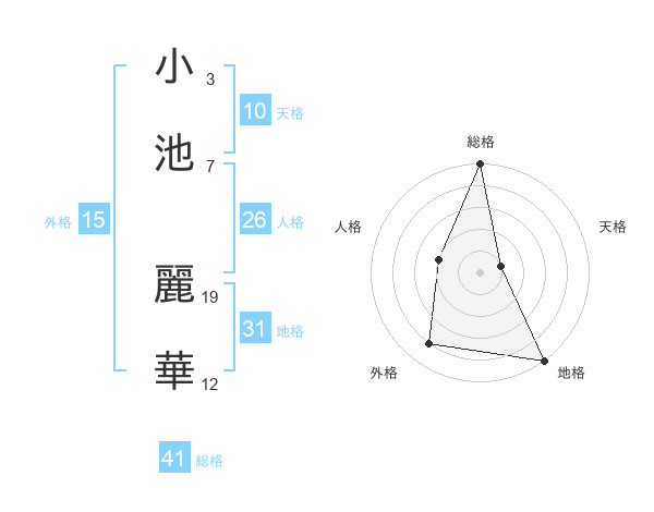 小池 麗華さんの総格は41画の5点!