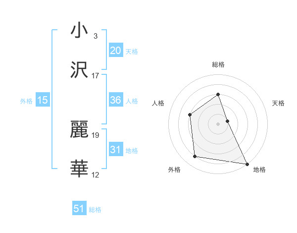 小沢 麗華さんの総格は51画の3点!