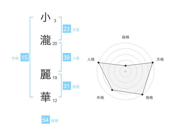 小瀧 麗華さんの総格は54画の1点!