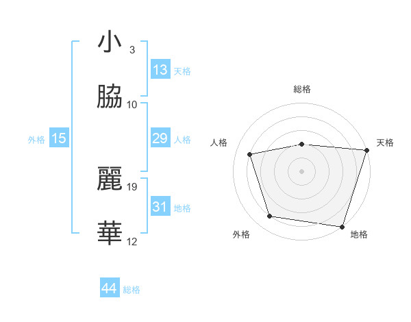 小脇 麗華さんを姓名の画数から五運を鑑定