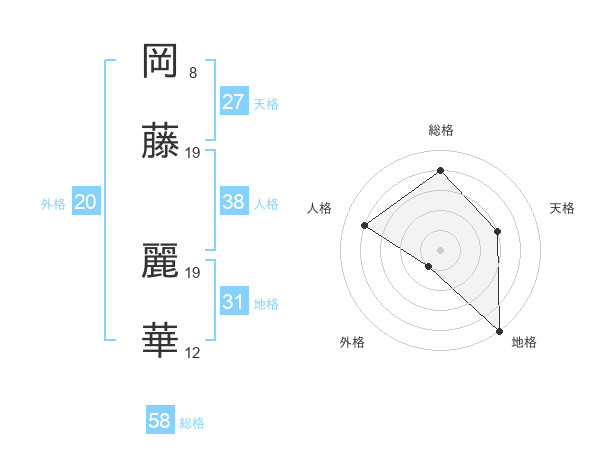 岡藤 麗華さんの総格は58画の4点!