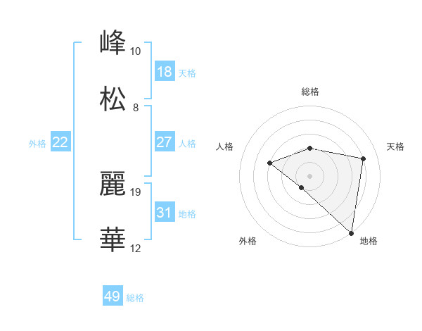 峰松 麗華さんの総格は49画の2点!