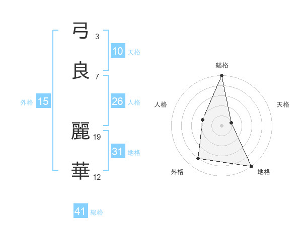 弓良 麗華さんを姓名の画数から五運を鑑定