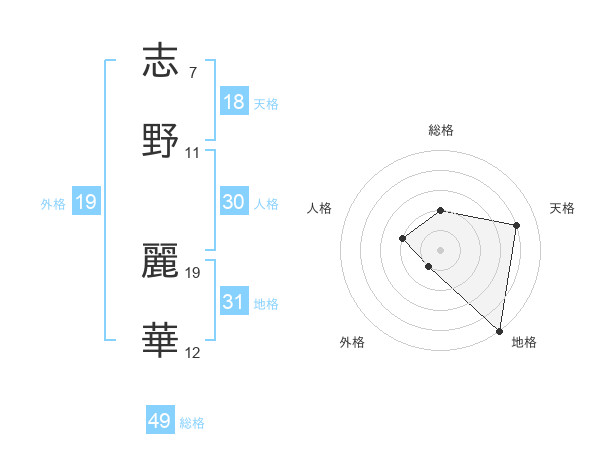 志野 麗華さんの総格は49画の2点!