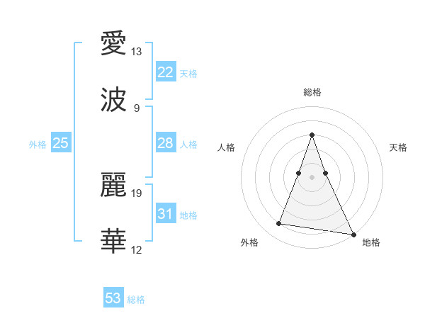 愛波 麗華さんの総格は53画の3点!