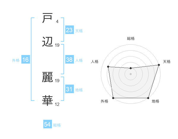 戸辺 麗華さんの外格は16画の5点!