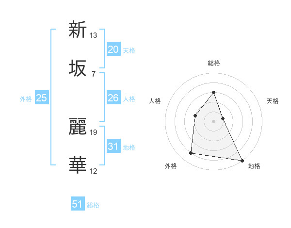新坂 麗華さんを姓名の画数から五運を鑑定