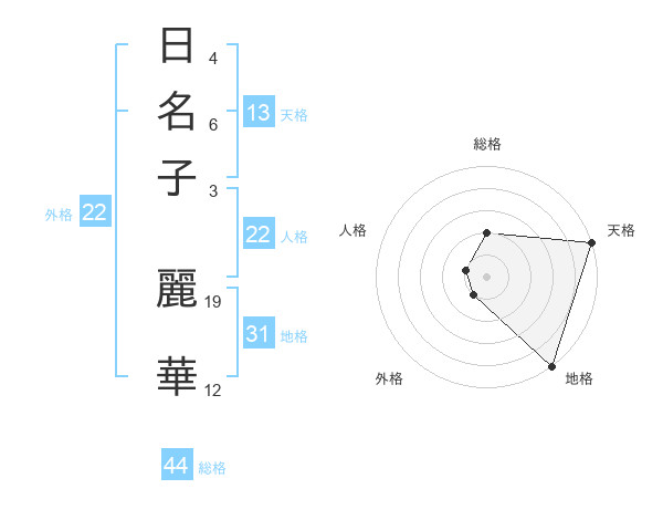 日名子 麗華さんの総格は44画の2点!