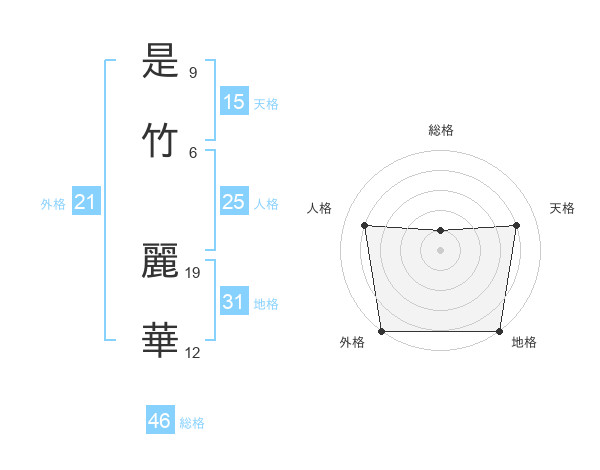 是竹 麗華さんの外格は21画の5点!