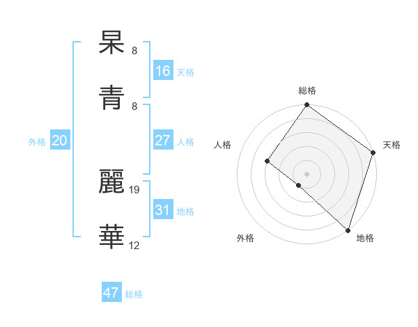 杲青 麗華さんの総格は47画の5点!