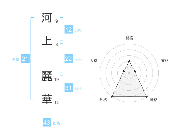 河上 麗華さんの総格は43画の2点!