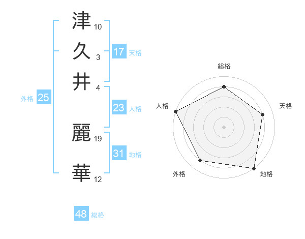 津久井 麗華さんの地格は31画の5点!