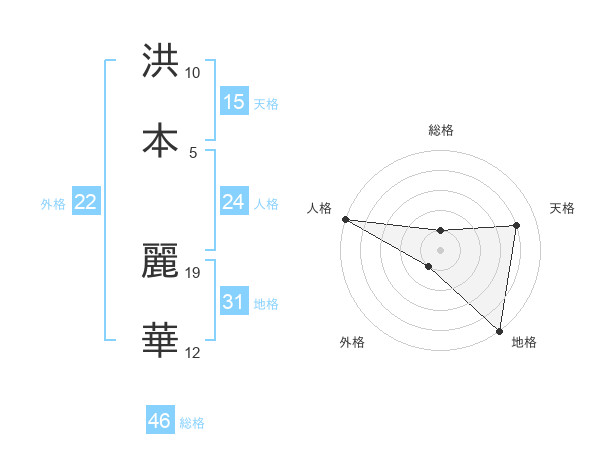 洪本 麗華さんを姓名の画数から五運を鑑定