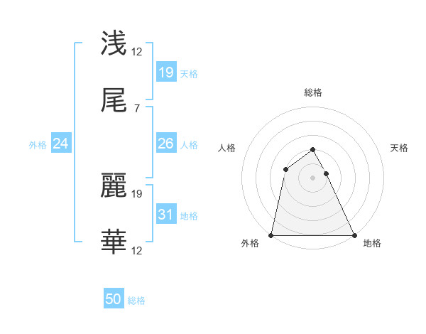 浅尾 麗華さんの総格は50画の2点!