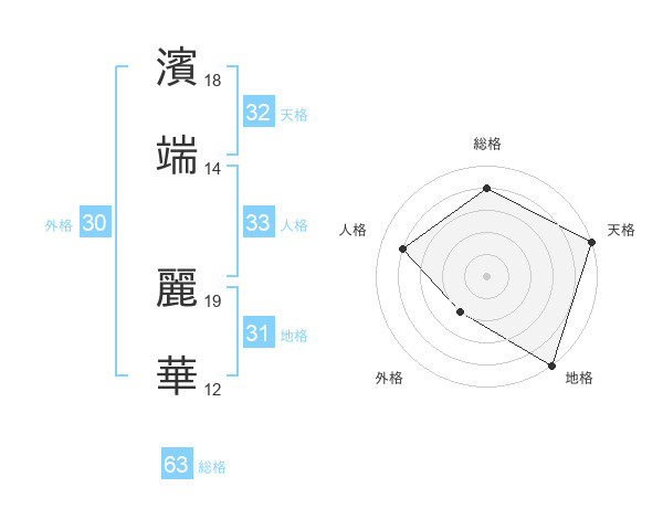 濱端 麗華さんを姓名の画数から五運を鑑定