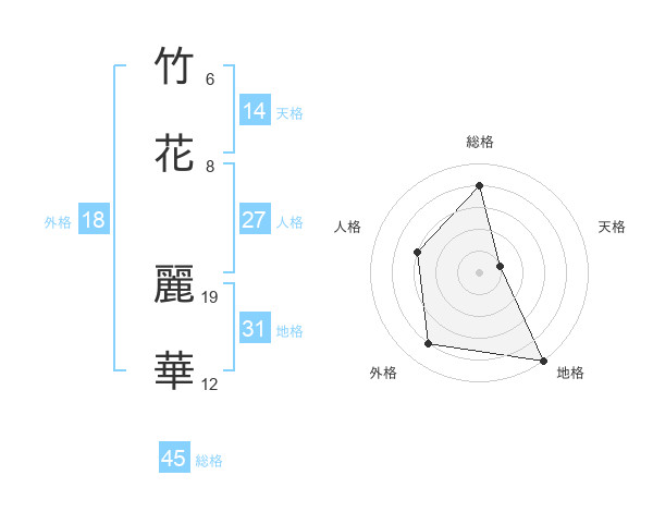 竹花 麗華さんの総格は45画の4点!