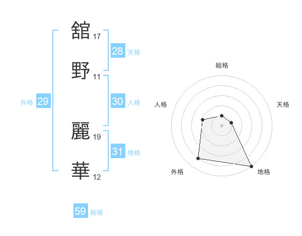 舘野 麗華さんの総格は59画の1点!